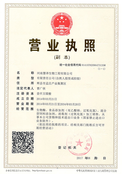 鄭州慧澤生化科技有限公司是一家充滿朝氣的科研生產(chǎn)型高技術(shù)企業(yè)。目前公司業(yè)務(wù)主要集中在精細(xì)化工、食品化工和微生物制劑行業(yè)。公司現(xiàn)已建成鄭州、焦作、新鄉(xiāng)三個生產(chǎn)基地,其中河南新鄉(xiāng)輝縣孟莊生產(chǎn)基地占地70畝,總投資達(dá)1.2億?,F(xiàn)擁有年產(chǎn)100000噸過氧化氫消毒劑,年產(chǎn)8000噸的過氧化鈣和年產(chǎn)5000噸的雙乙酸鈉的生產(chǎn)線,同時開設(shè)有生產(chǎn)總量5000噸的枯草芽孢桿菌、地衣芽孢桿菌等微生態(tài)制劑發(fā)酵生產(chǎn)車間。公司始終堅持“以人為本,科技興企,品質(zhì)優(yōu)良,用戶滿意”的經(jīng)營宗旨。為客戶創(chuàng)造價值更多的價值...